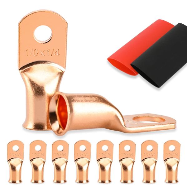 Battery Cable Ends, 1/0 Gauge Wire Connectors 1/4 Copper Wire Lugs 8pcs